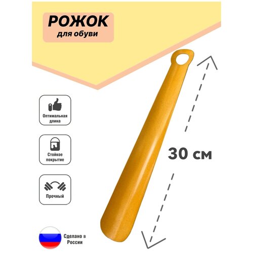 Ложка для обуви металлическая, Рожок для обуви железный, 30см. Цвет: Жёлтый
