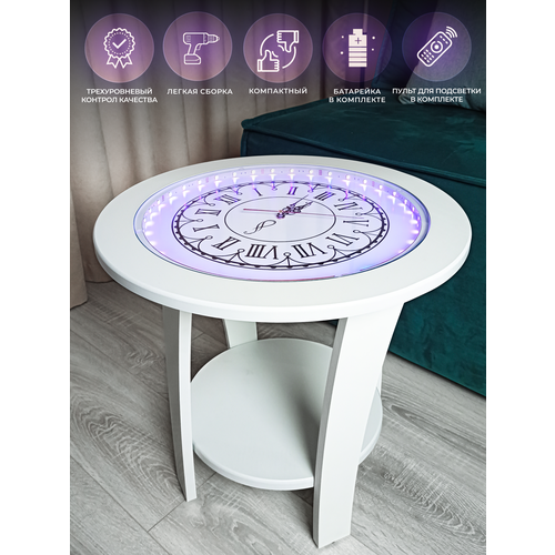 Столик с подсветкой и часами, жемчуг/белый, 50*45