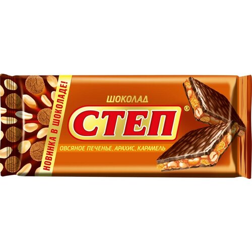 Шоколад молочный степ c овсяным печеньем, арахисом и карамелью, 100 г - 10 шт.