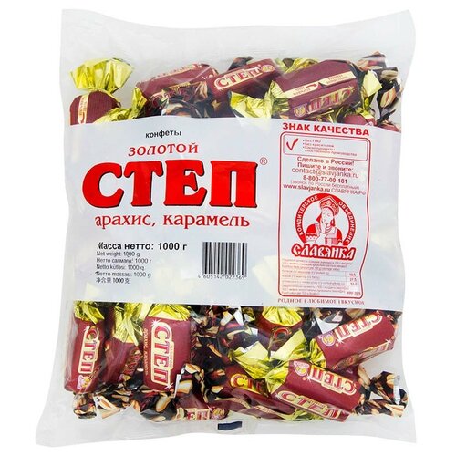 Конфеты Степ Золотой, арахис и карамель, 1 кг, пластиковый пакет