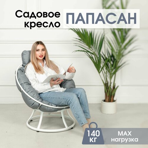 Кресло садовое Папасан без ротанга на балкон и для дачи, Белый с серой подушкой
