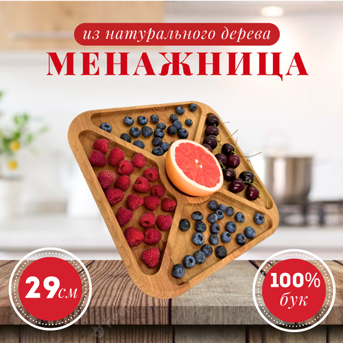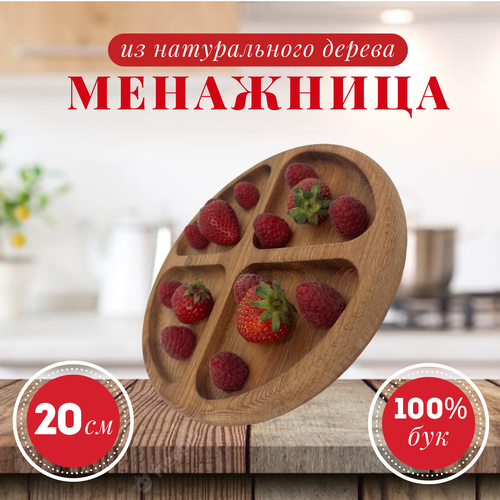 Менажница деревянная круглая 4 отдела тарелка - форма для закусок, сыра, нарезки и десертов, 20 см, массив бука
