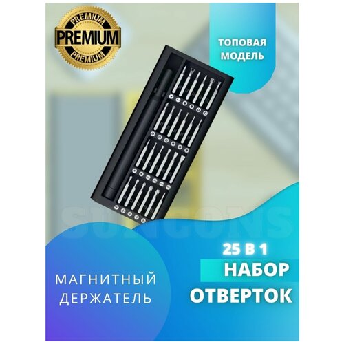Набор прецизионных отвёрток для точных работ 25 в 1 в пластиковом кейсе с магнитными битами для ремонта телефона, ноутбука, планшета, электроники