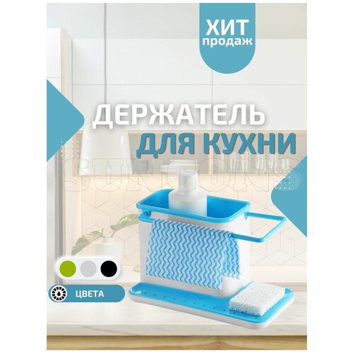 Кухонный органайзер на раковину / Подставка для моющих средств, губки, щетки, полотенца на мойку, голубой