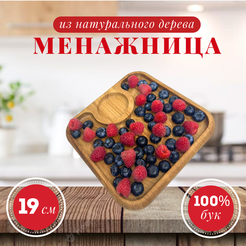 Менажница деревянная квадратная 2 отдела тарелка - форма для закусок, сыра, нарезки и десертов, 19x19 см, массив бука