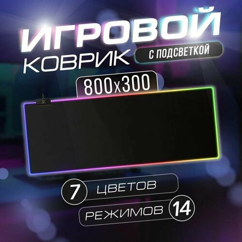 Коврик для мышки 800х400 мм с подсветкой большой, Игровой, RGB, Черный