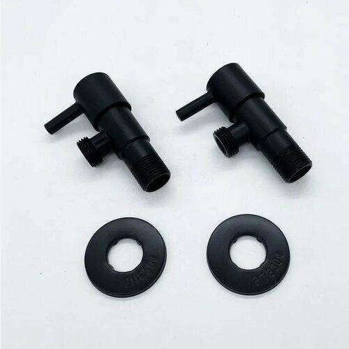 Кран угловой Чёрный TIM 1/2" - 1/2" для стиральной машины и бытовой техники, корпус из нержавеющей стали, керамическая кран-букса в комплекте с отражателем - 2шт