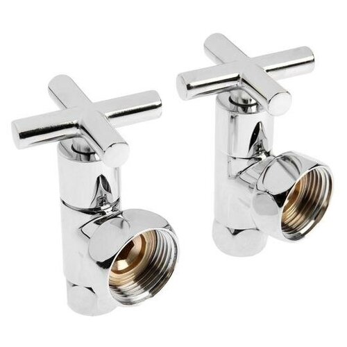 Вентиль угловой для полотенцесушителя TIM KV10-LFF042, вн.1"х1/2", ручка крест, хром, 2 шт.