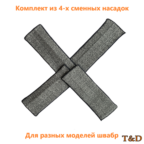Сменная насадка тряпка микрофибра на швабру с отжимом 4 штуки