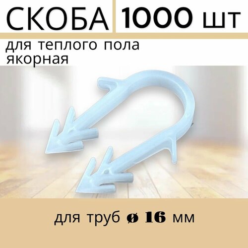 Скобы для теплого пола 16мм, 1000шт, якорные, белые