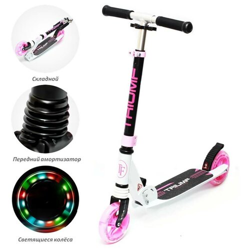 Детский двухколёсный самокат складной со светящимися колёсами Triumf Active SКL-041 Lights Бело-розовый