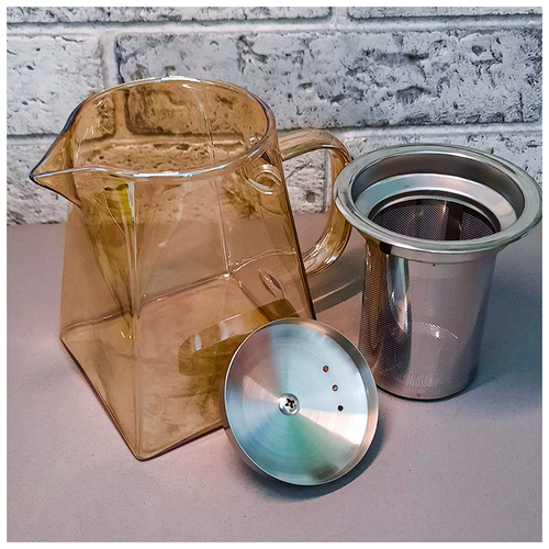 Заварочный чайник из жаропрочного стекла 550 мл, пирамида, металлик