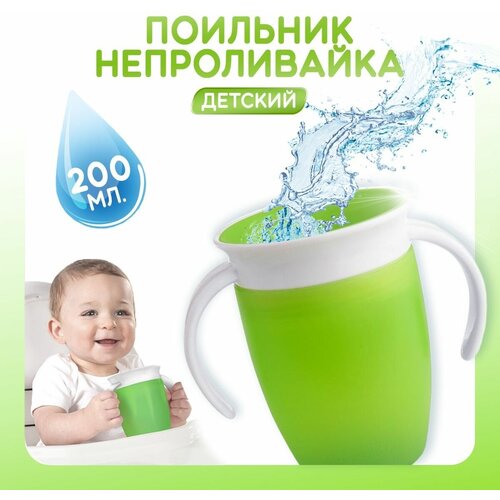 Поильник непроливайка 360 с ручками 207 мл, с 6 мес, Светло-Зеленый