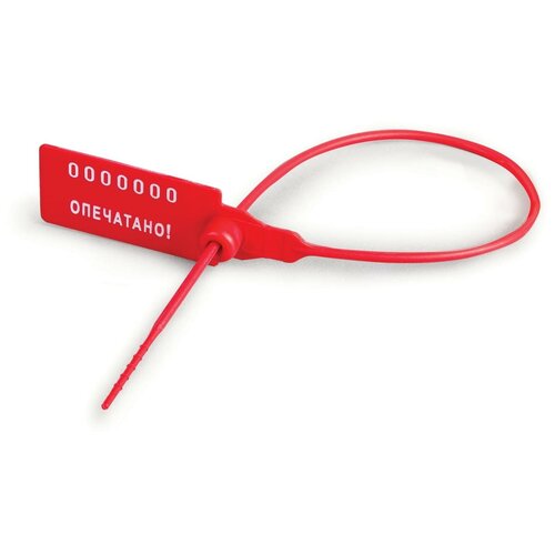Пломбы пластиковые номерные, самофиксирующиеся, длина рабочей части 220 мм, красные, комплект 1000 шт, 600805