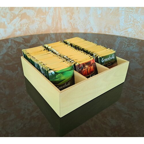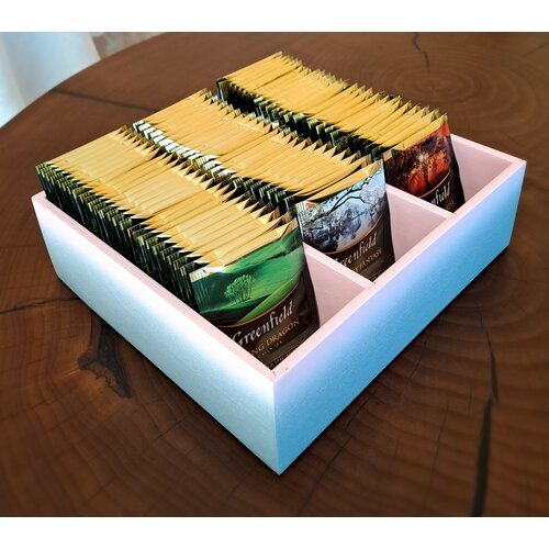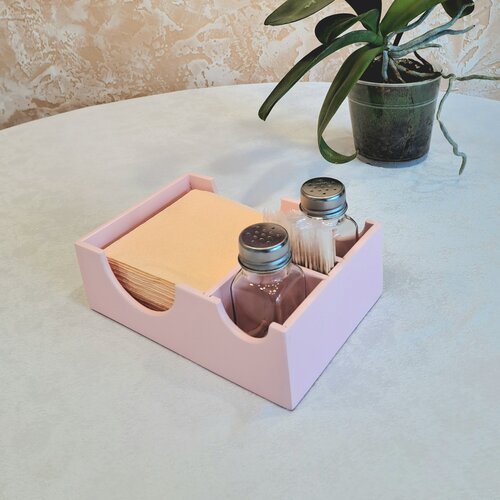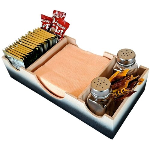 Салфетница деревянная тройная 290х140х68 мм, органайзер для салфеток, чая, солонок черно-персиковая