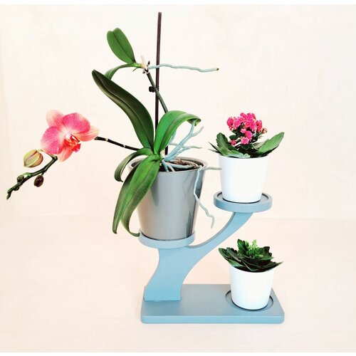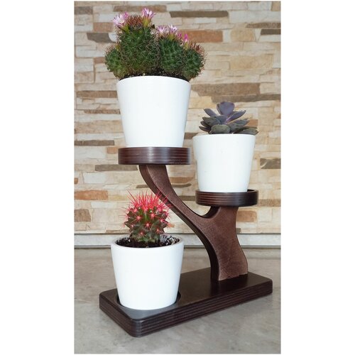 Подставка для цветов "Дерево" на три горшка малое коричневое лакированное