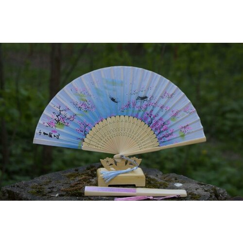Веер складной, веер ручной работы, для танцев. Голубой цвет . Веер Весна.