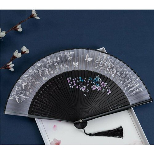 Веер складной, веер ручной работы, для танцев. Благородный черный .