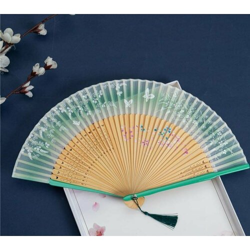 Веер складной, веер ручной работы, для танцев. Светло-зеленый .