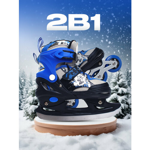 Коньки ролики 2 в 1 раздвижные Victory, размер M (35-38), синие