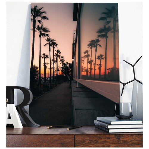 Картина интерьерная, панно, рисунок на холсте 60*90, пальмы, вечер