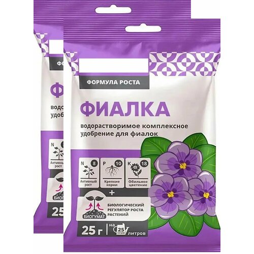 Комплексное минеральное удобрение "Фиалка" 2 шт по 25 г - водорастворимый концентрат для подкормки комнатных растений. Стимулирует рост и цветение, предохраняет от болезней