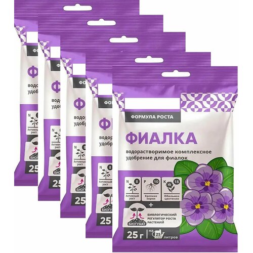 Комплексное минеральное удобрение "Фиалка" 5 шт по 25 г водорастворимое. Концентрат для подкормки комнатных растений. Стимулирует рост и цветение, предохраняет от болезней