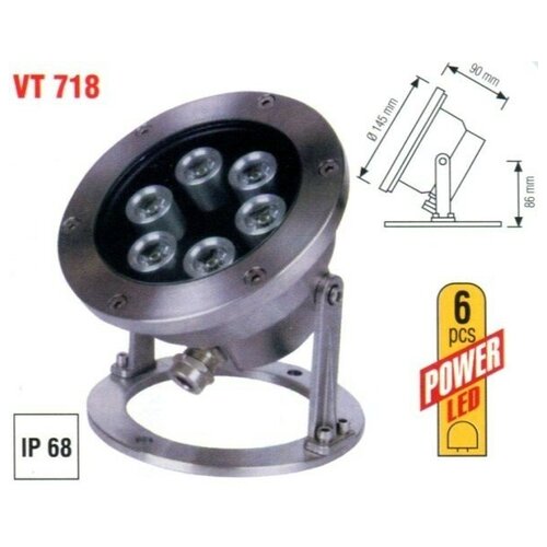 Светильник уличный светодиодный 6вт IP65 серебро Vito VT718, VT718-6X1W/IP68/PWRLED