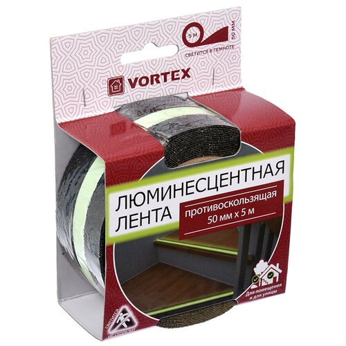 Лента противоскользящая Vortex, самоклеящаяся, 50 мм x 5 м, сигнальная люминесцентная
