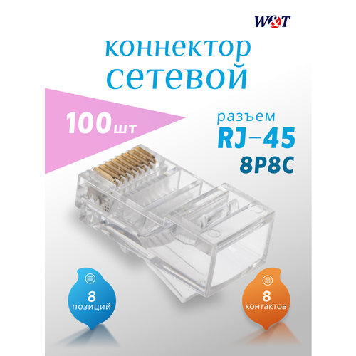 Коннектор RJ-45 (8P8C) для кабеля UTP категории 5E (100 шт.), WT-6002A-100