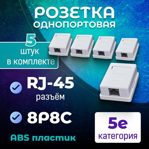 Розетка компьютерная RJ-45, категория 5E, 8P8C, 5 шт.