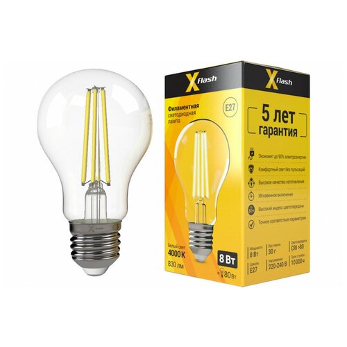 Лампа светодиодная X-flash 48182, E27, A60, 8 Вт, 4000 К