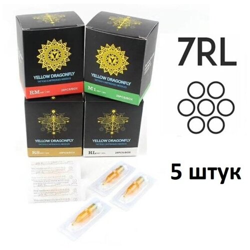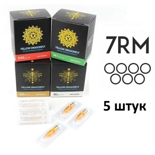 Тату картриджи YELLOW DRAGONFLY 7RM для тату и татуажа, 0.35 мм, 5 шт.