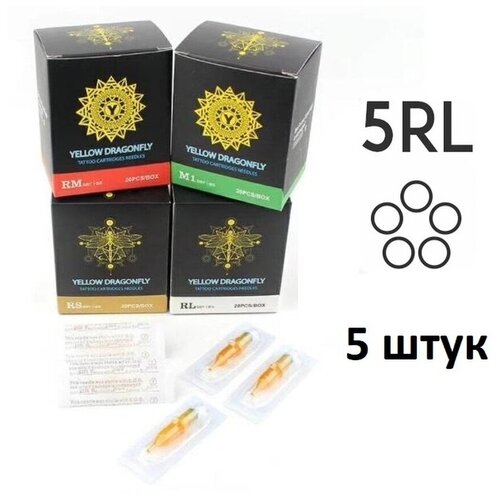 Тату картриджи YELLOW DRAGONFLY 5RL для тату и татуажа, 0.35 мм, 5 шт.