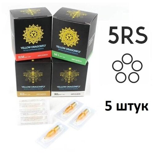 Тату картриджи YELLOW DRAGONFLY 5RS для тату и татуажа, 0.35 мм, 5 шт.
