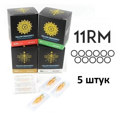 Тату картриджи YELLOW DRAGONFLY 11RM для тату и татуажа, 0.35 мм, 5 шт.