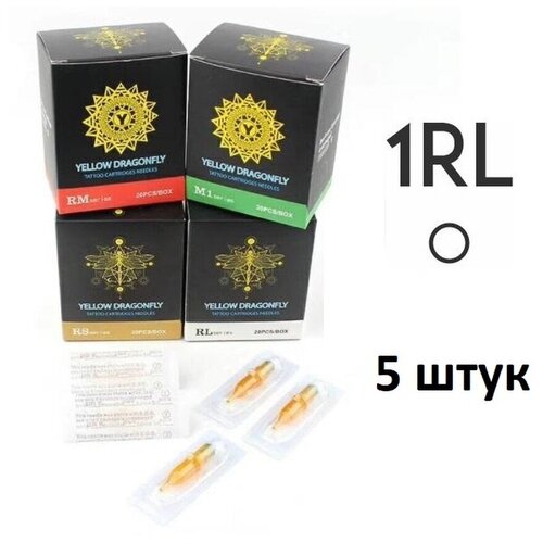 Тату картриджи YELLOW DRAGONFLY 1RL для тату и татуажа, 0.35 мм, 5 шт.