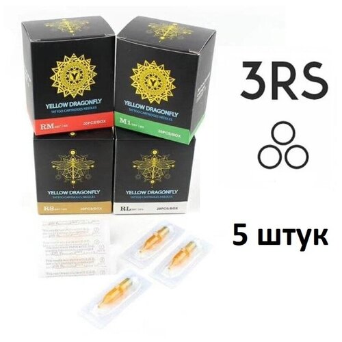 Тату картриджи YELLOW DRAGONFLY 3RS для тату и татуажа, 0.35 мм, 5 шт.