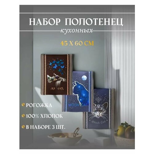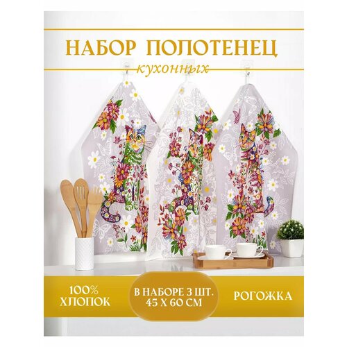 Набор кухонных полотенец, 45х60 см, 3 шт, рогожка, подарок надень рождения