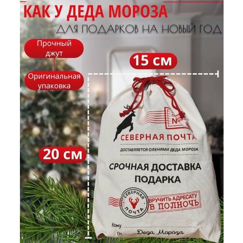 Подарочный мешок "Новогодний мешок от Деда Мороза", завязки и шнурок, 15 см x 20 см