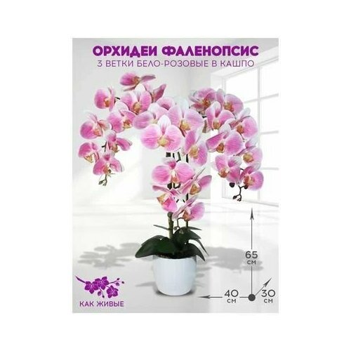 Цветочная композиция Орхидея в кашпо Искусственные цветы. латекс силикон (как живые)для декора интерьера