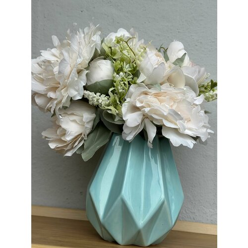 Цветочная композиция Пионы в керамическом кашпо. Искусственные цветы. латекс силикон (как живые)для декора интерьера