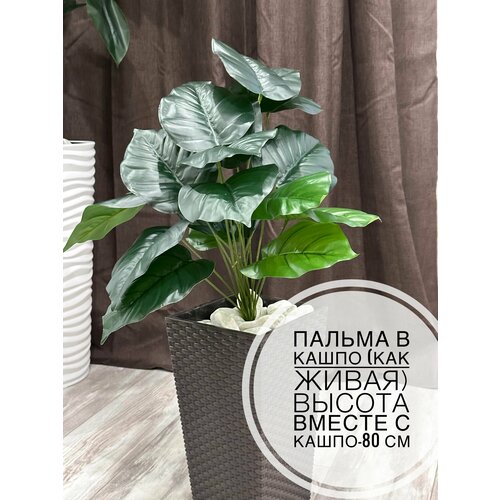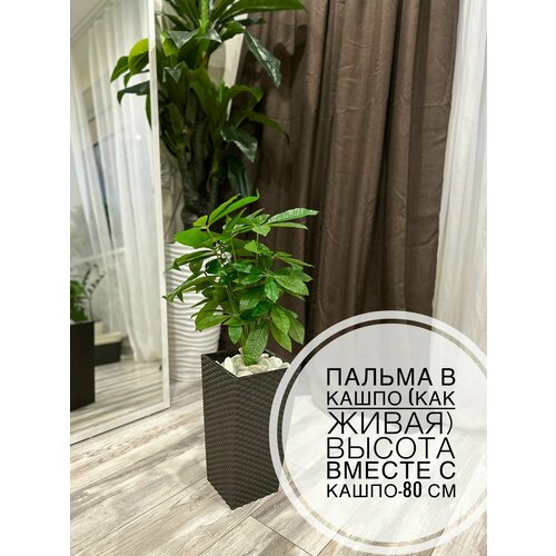 Папоротник искусственный в горшке. Искусственная Пальма в пластиковом напольном кашпо ротанг