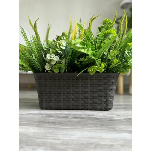 Искусственная зелень в ящике балконном высота вместе с кашпо-35 см Папоротник, эвкалипт, лаванда