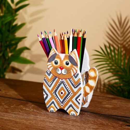 FlashMe Подставка под ручки "Котик" албезия 12х8х15 см