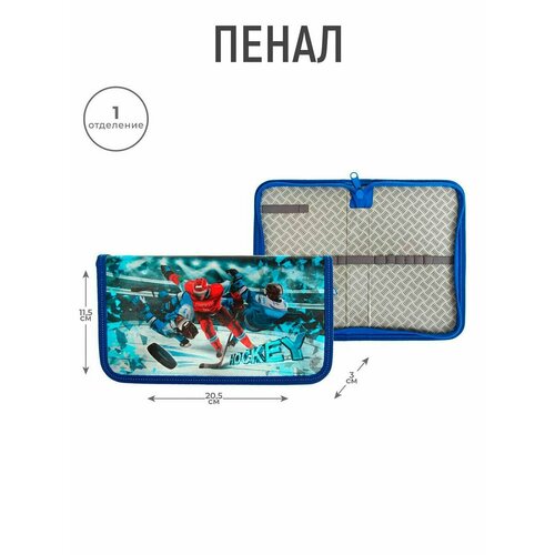 Пенал 1 секция 115 х 205 х 30 мм, Calligrata "Хоккеисты" (рисунок с эффектом металлика), ламинированный картон