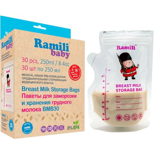 Пакеты для хранения и заморозки грудного молока 30 шт./ 250 мл. Ramili Baby BMB30