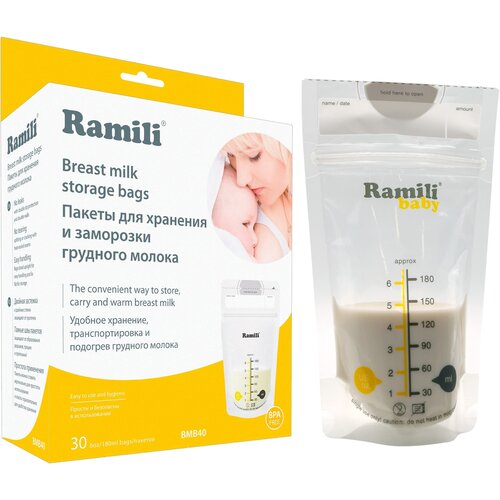 Пакеты для хранения и заморозки грудного молока 30 шт./ 180 мл. Ramili Baby BMB40