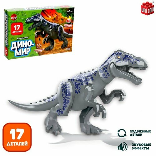 Конструктор блочный Unicon "Диномир", цератозавр, звуковые эффекты, 17 деталей (ZY1047899)