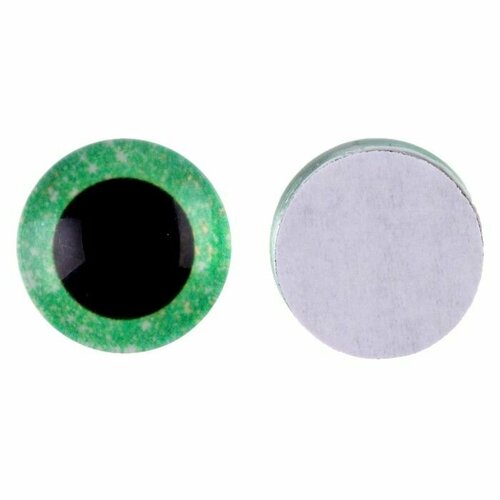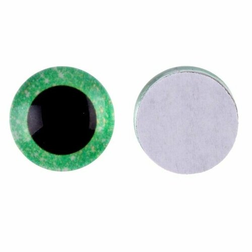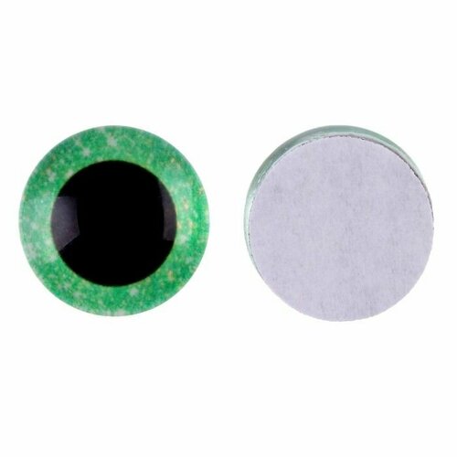 Глаза на клеевой основе, набор 10 шт, размер 1 шт 14 мм, цвет зеленые с блестками